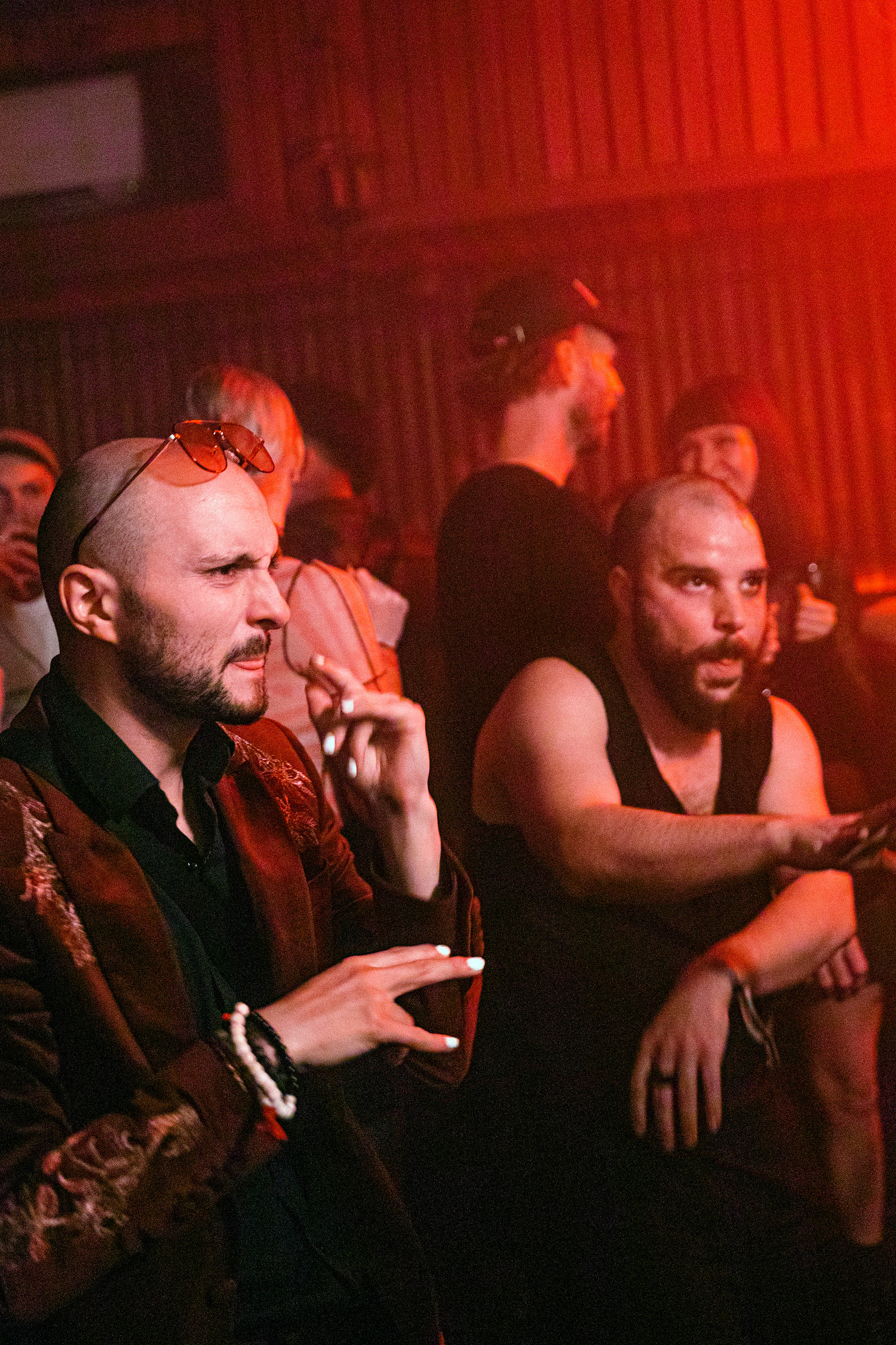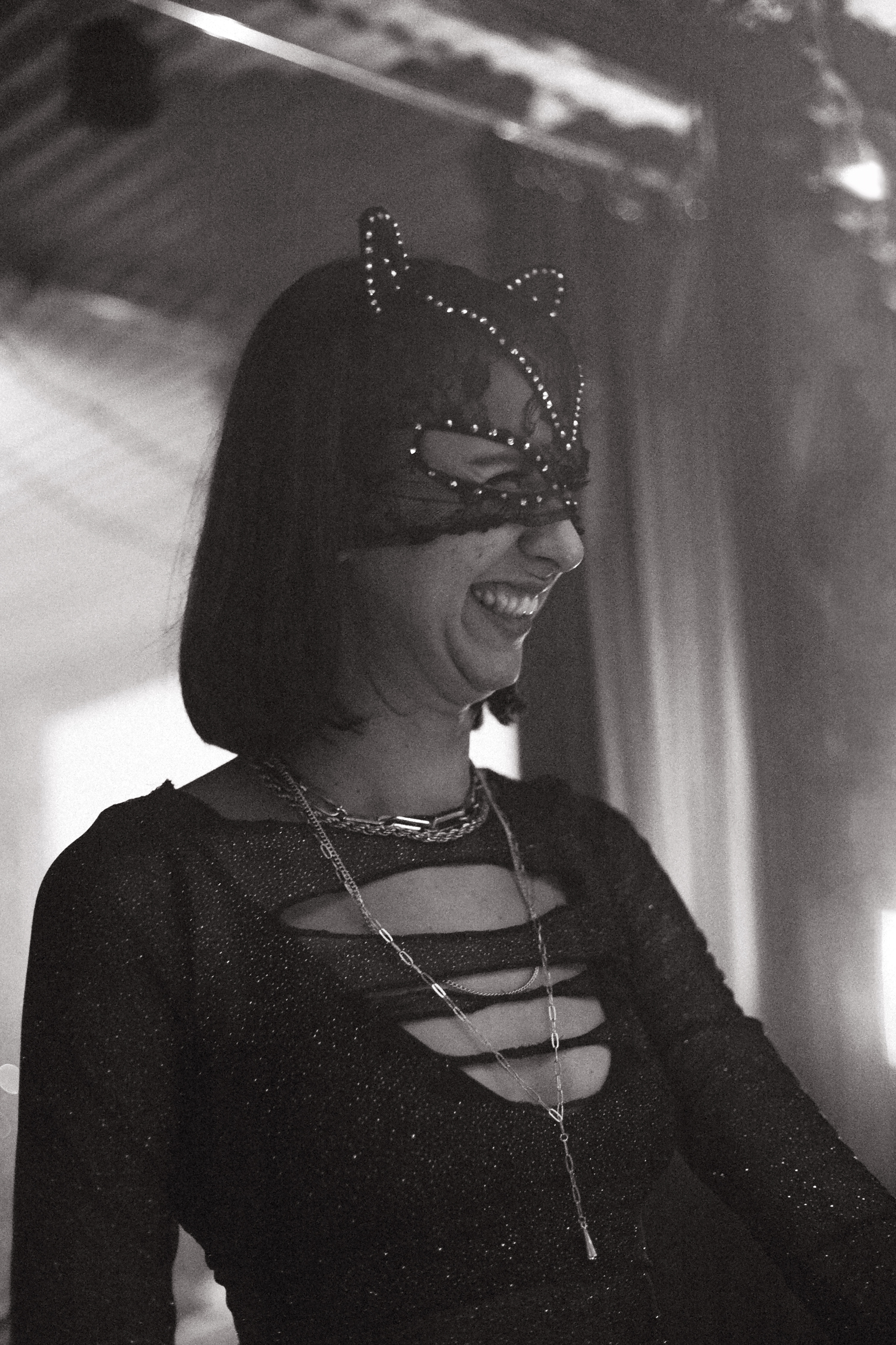 'Through the pulsing red lights, driving beat and smoke filled basement, you catch the sultry outline of your lover...